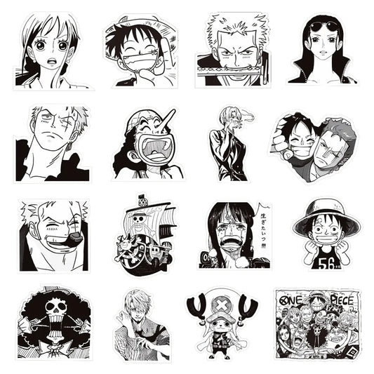 10/30/65pcs Black White Anime ONE PIECE Stickers for Kids DIY Graffiti Motorcycle Skateboard Laptop Waterproof Cool Sticker Toys
